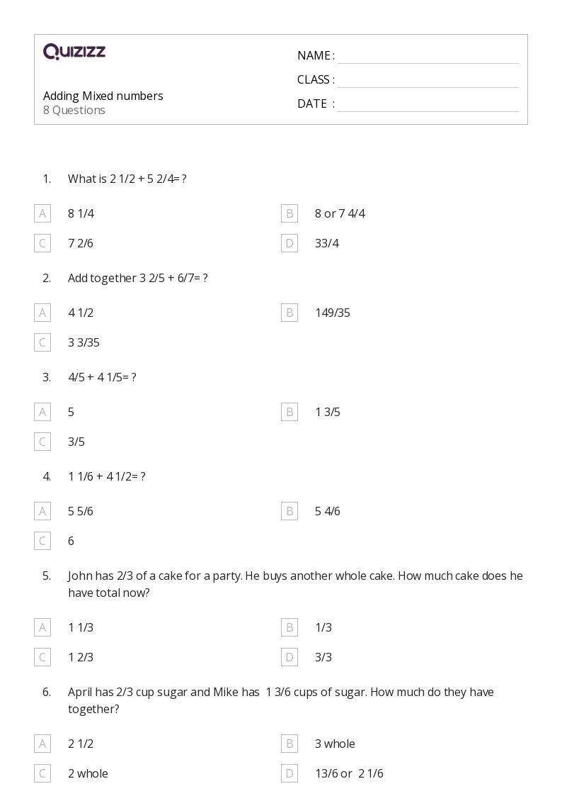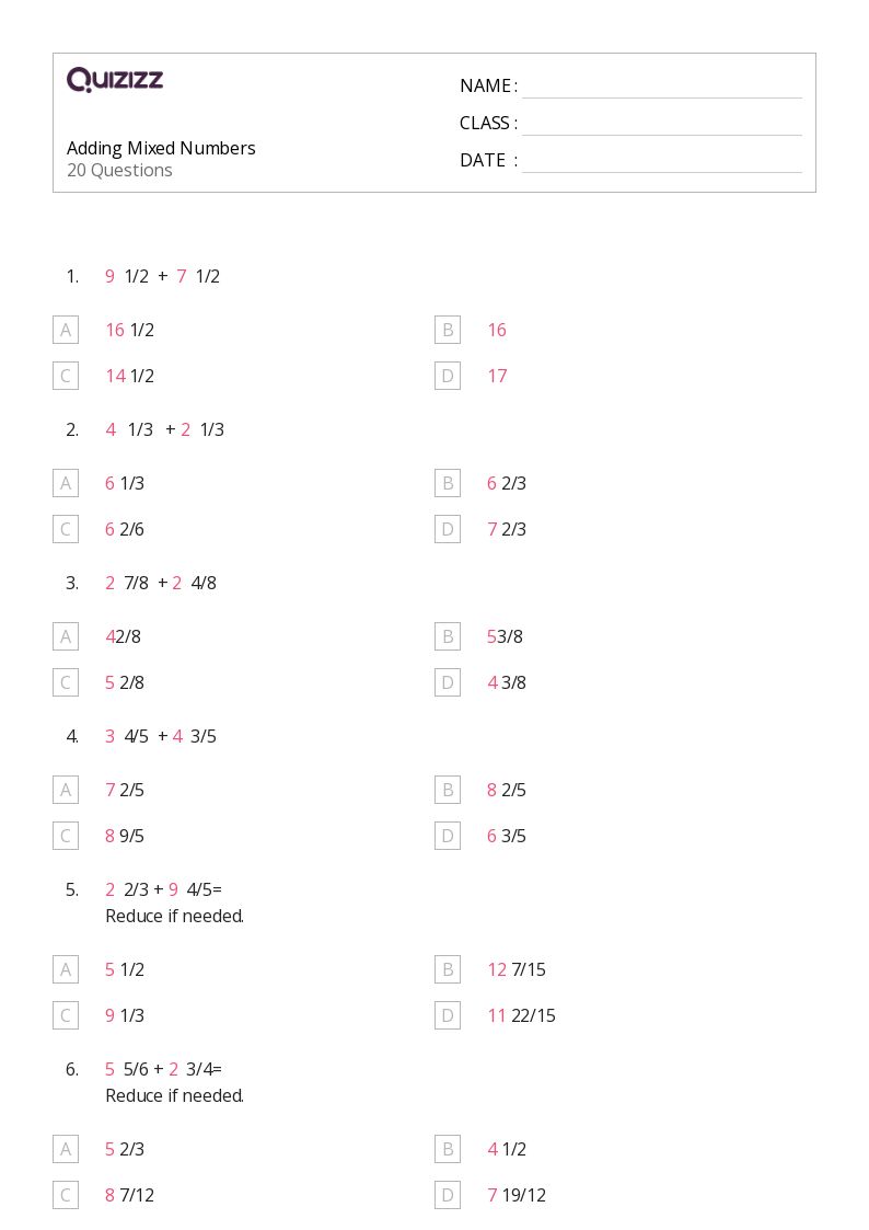 50+ Adding Mixed Numbers Worksheets For 5th Class On Quizizz